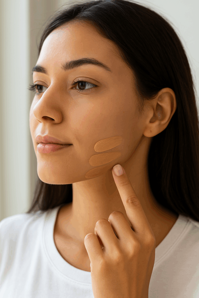 Always test foundation on your jawline, not your hand or wrist. The perfect shade should blend into your face and neck seamlessly. Check the color in natural light for the most accurate match.