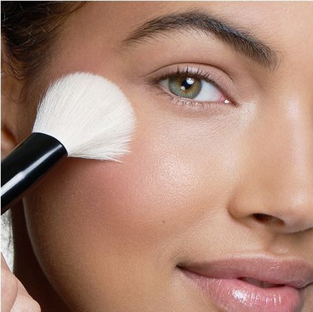 Use a translucent or compact powder only on areas that tend to get oily, like the T-zone. Finish off with a makeup setting spray to lock everything in place while maintaining a dewy glow.